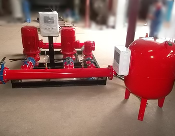 消防气压稳压给水设备是一种新型的无塔给水设备,由水泵机组控制设备、增压稳压设备三大部分组成。供水能力由水泵机组决定,系统的协调运行由控制系统控制,增压稳压设备主要作用是贮能保压,应付少量供水以及正常的管道泄漏,同时也是实行自动控制不可缺少的一部分。大量用水时,管网压力下降,水泵自动启动供水。
